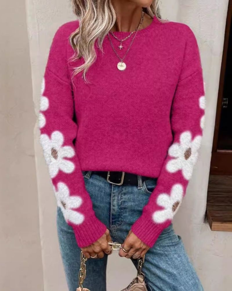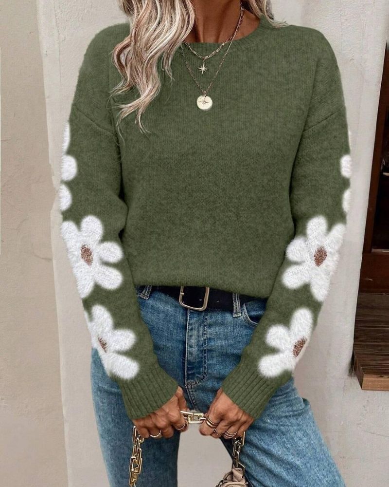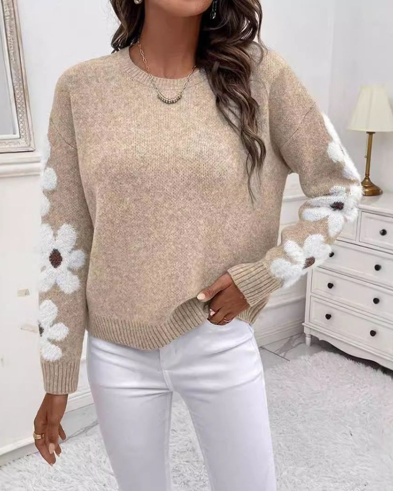 COZY KNITTED JUMPER WITH FLORAL SLEEVES