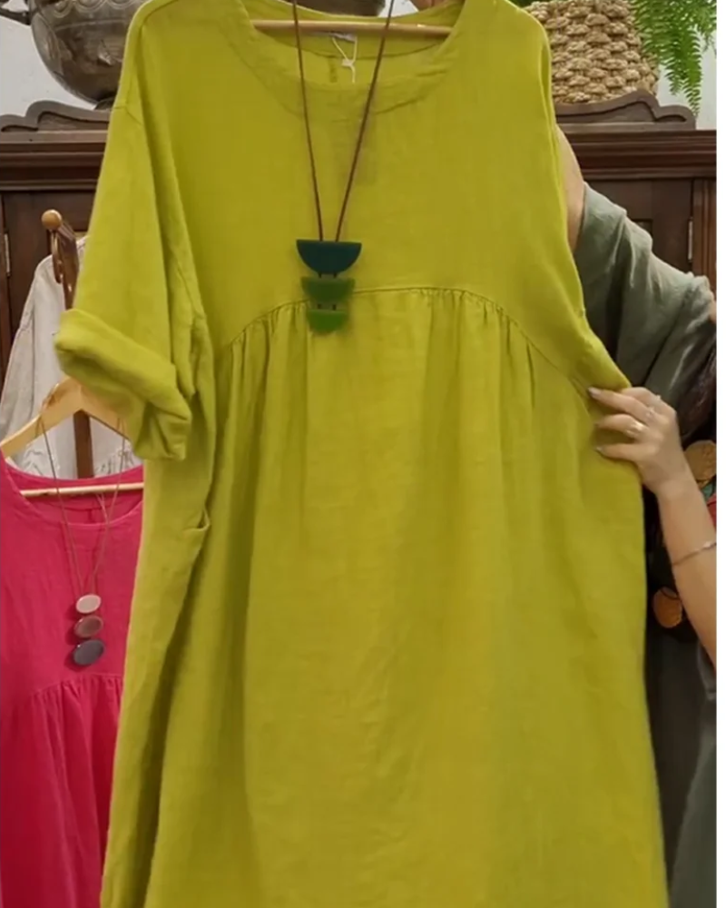 Step into serene comfort with the MANDIRA Cotton and Linen Dress. Crafted from breathable natural fibers, this relaxed silhouette falls beautifully for a flowy and flattering look. Whether you're heading to a creative market stroll or an afternoon brunch, its earthy tones and minimalist charm ensure you feel confident and free.
