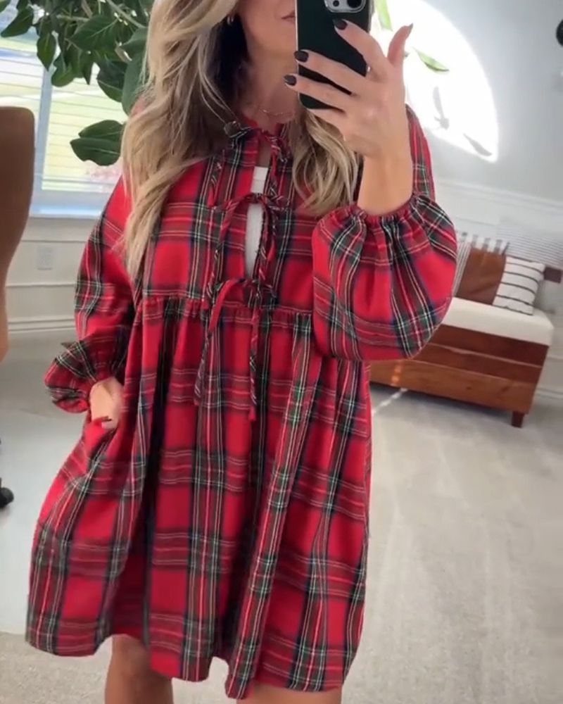 Embrace the spirit of the season with the plaid dress.